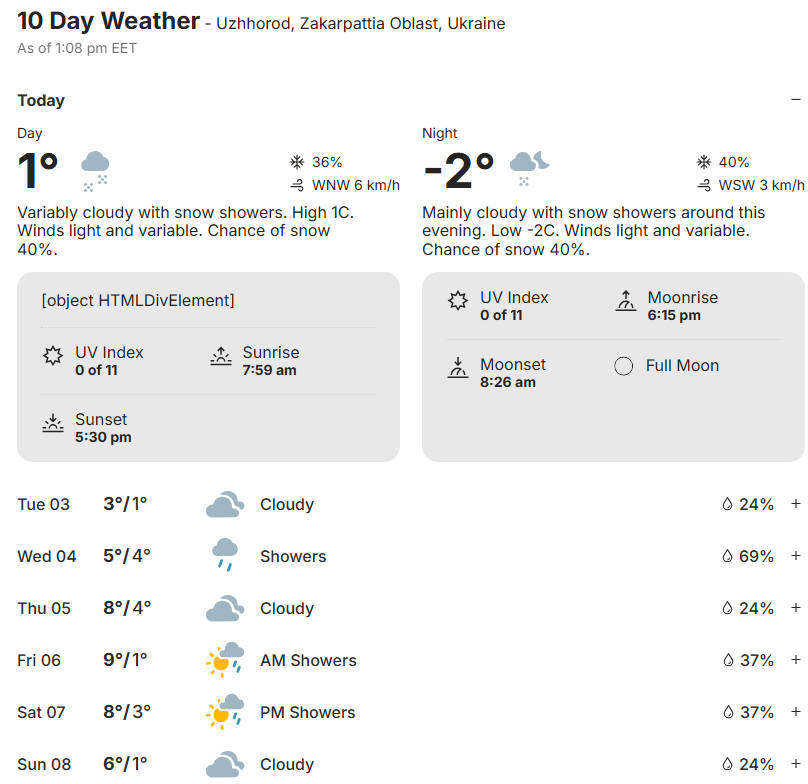 Прогноз погоди в Ужгороді