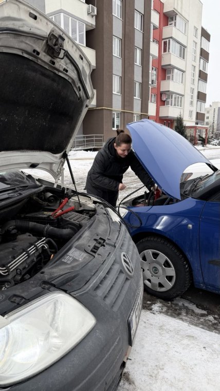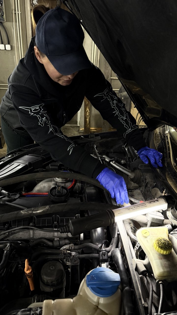 У серпні 2025-го вони з чоловіком відкрили FixAuto в Бучі. Спочатку він працював сам, а вона була на підхваті, поки не зібрали команду. Тепер Олена і запчастини підбирає, і з машинами допомагає, якщо треба.