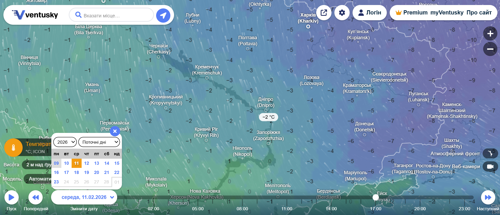 У середу, 11 лютого, холод поступово слабшатиме й вдень температура триматиметься в межах –2 °C, що вже відчутно м’якше, ніж у перші дні тижня.
