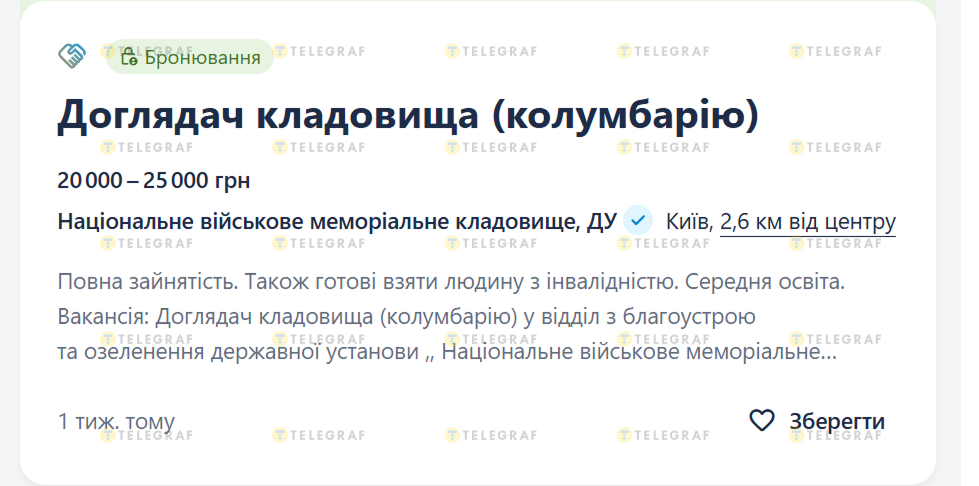 Вакансія доглядач кладовища