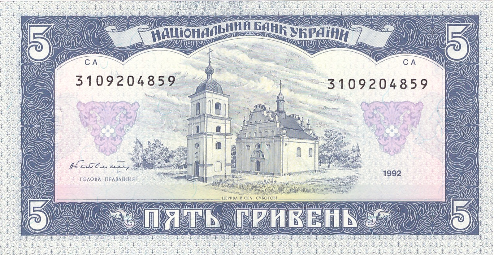 Купюра 5 грн., дизайн 1992 року. Фото: Вікіпедія