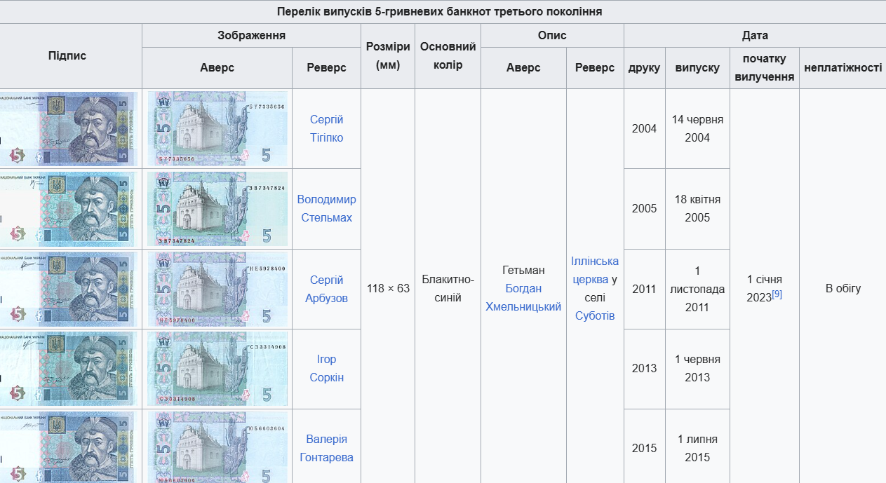 Купюра 5 грн., дизайн 2004-2015. Фото: Вікіпедія
