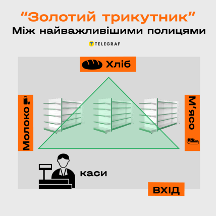 "Телеграф" розповість, як магазини змушують нас купувати більше, ніж ми планували. У цьому матеріалі ми розберемо, що таке "золотий трикутник"