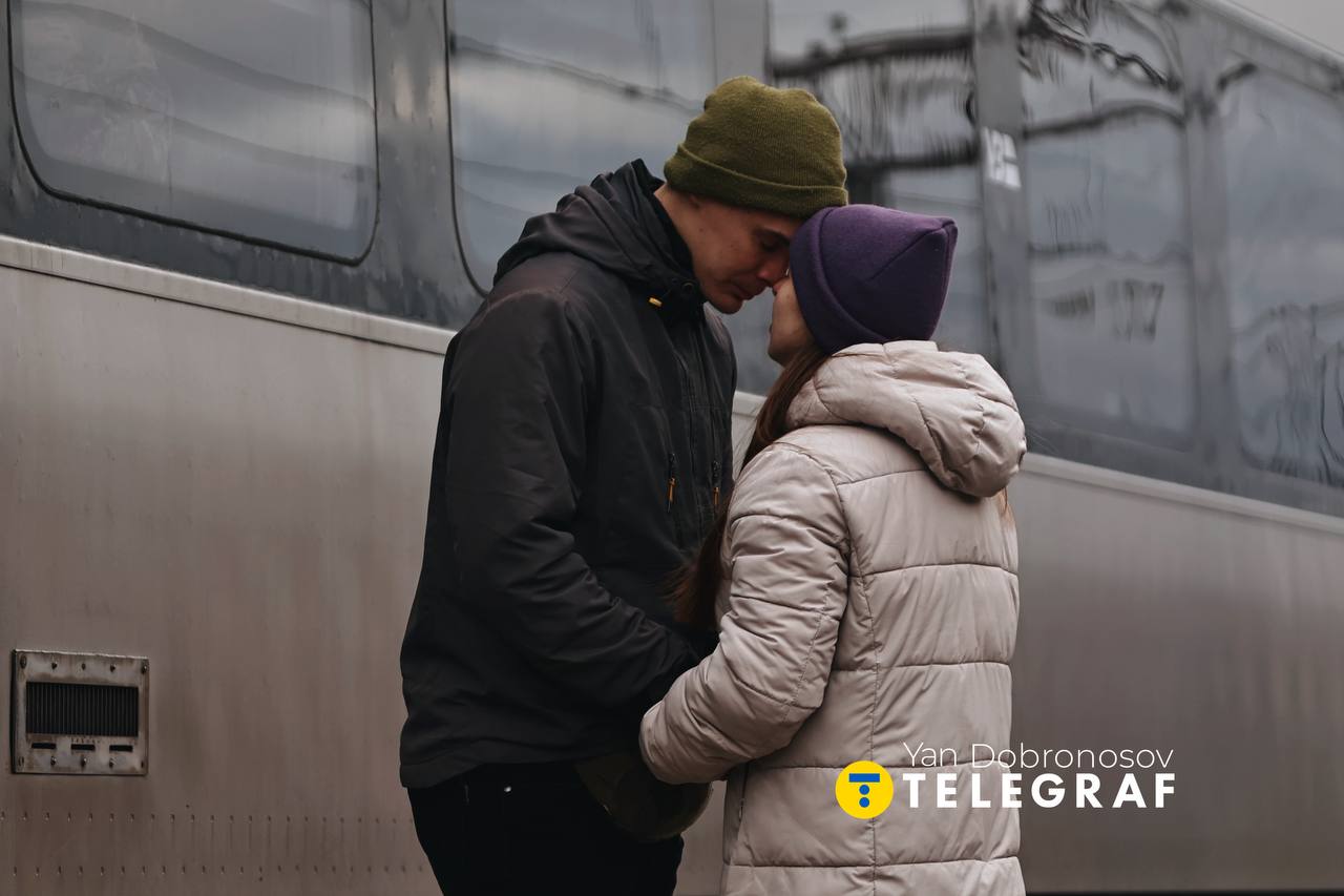 Кореспондент "Телеграфу" Ян Доброносов кілька разів ставав свідком таких важких прощань на вокзалі в Краматорську. Його фото показують справжнє кохання та біль, які наразі відчувають українці.