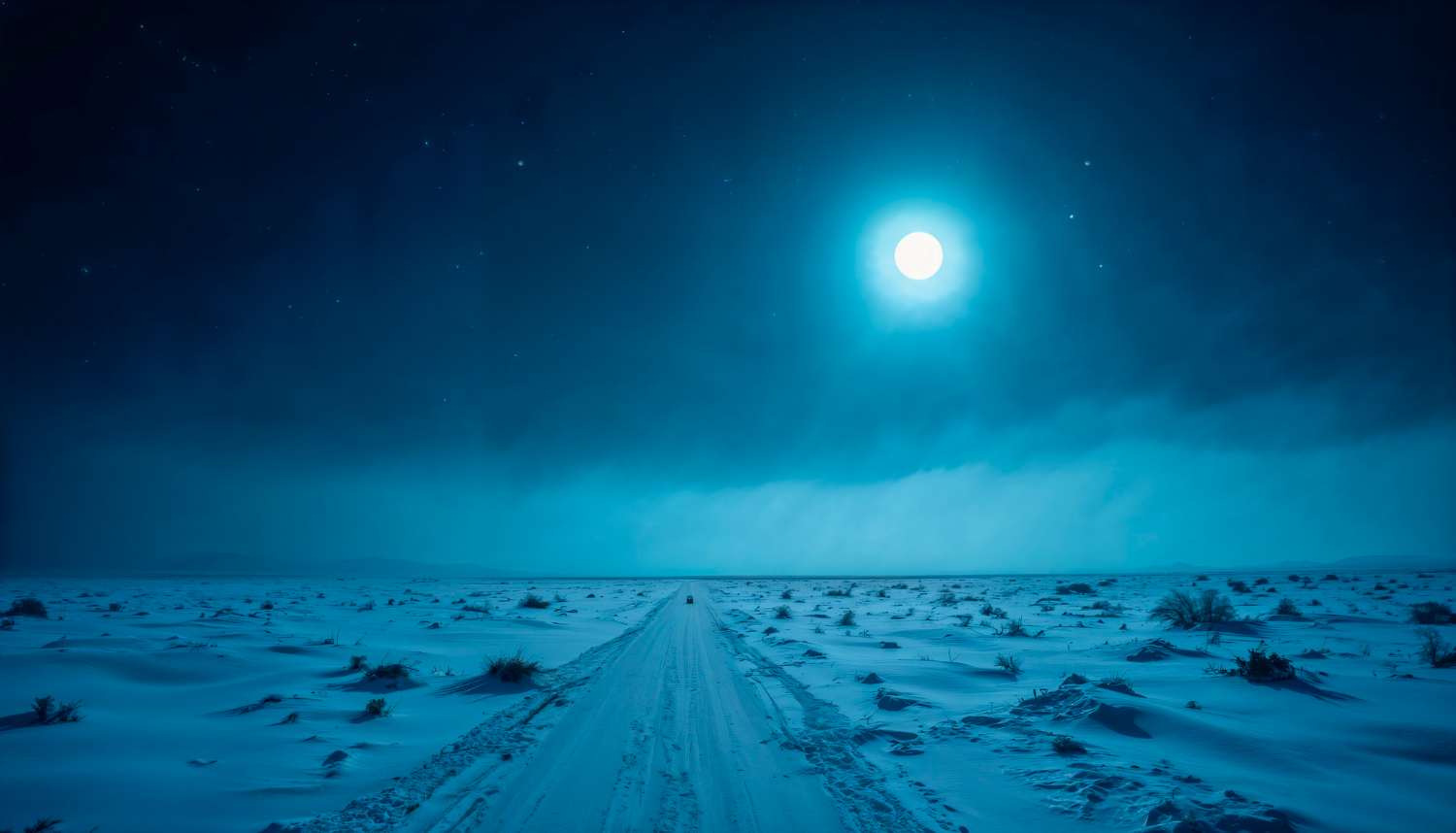 Місяць на небі і сніг на дорозі