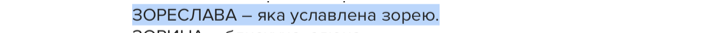 Те саме стосується Зореслави, чиє значення — "слава зорі" — не витримало конкуренції з поширеними Світланою чи Софією. Нині це ім’я зберіглося переважно в колі тих родин, які свідомо плекають національну ідентичність.