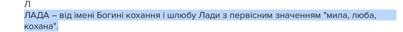 Окремої уваги заслуговує Лада — ім’я, що відсилає до давньої богині краси та любові. Воно практично зникло з ужитку, будучи заміненим християнськими відповідниками, зокрема Ларисою.