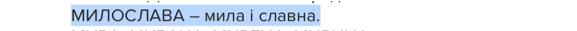 Імʼя Милослава, чиє ім’я славить милосердя та лагідність, втратила популярність під тиском масового поширення Марій та Наталій. Хоча сьогодні ми спостерігаємо поступове відродження цього імені серед свідомого українства.