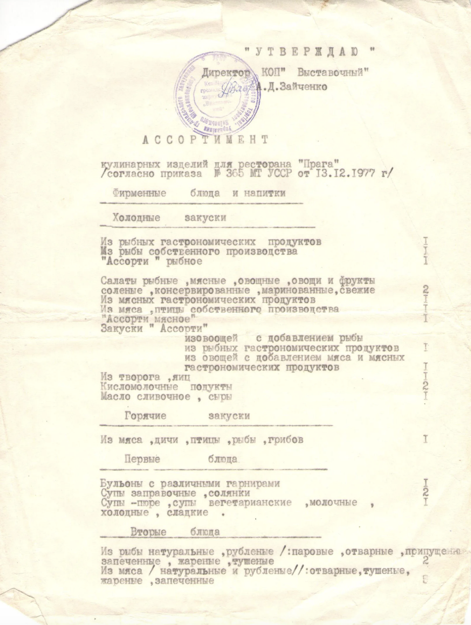 Меню у ресторані "Прага" у 80-тих. Фото: відкриті джерела