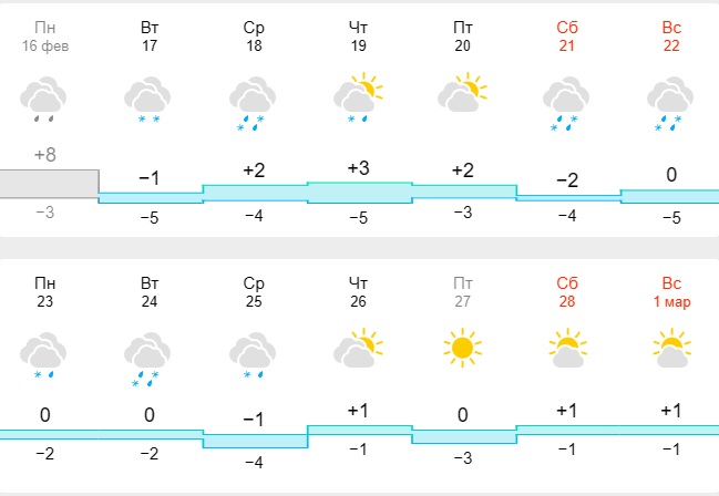 Аналогічної думки дотримуються синоптики сервісу Meteofor. За цим прогнозом до кінця лютого в Дніпрі очікується плюсова температура з нічними морозами — +3-4 градуси. Можливий сніг та дощі.
