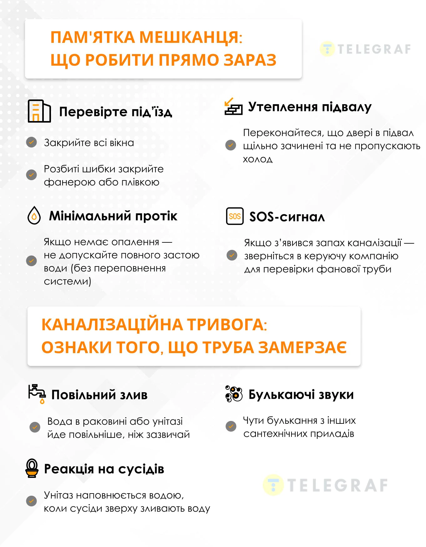 Про це "Телеграфу" розповіла експертка з житлово-комунального господарства Кристина Ненно: Ваш стояк у небезпеці. Як не дати замерзнути каналізації: практичні поради від експертки ЖКГ (інфографіка)