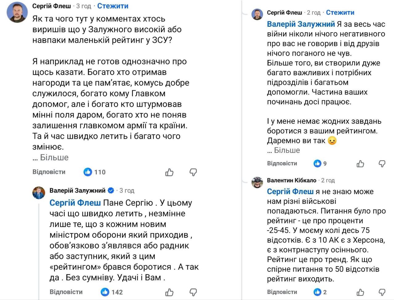 Цю перепалку вже відмітили медійні люди та журналісти, так кореспондентка Юлія Кирієнко додала: "Настають часи гри в політику. Блогер, якого призначили радником МО Сергій Флеш, вирішив теж цим зайнятись. Прийшов питати про рейтинги генерала Валерія Залужного у військах".