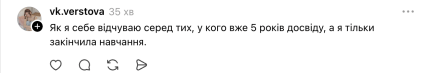 • Як я себе відчуваю серед тих, у кого вже 5 років досвіду, а я тільки закінчила навчання.