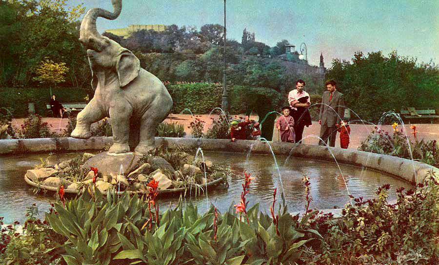 Та справжньою зіркою парку став величезний фонтан у формі слона. Масивна цементна фігура замінила попередню скульптуру — старого "Аполлона" — і майже одразу підкорила серця киян.