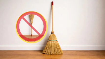 • залишати віник "п'яткою вгору" — це вважається символом невдачі;