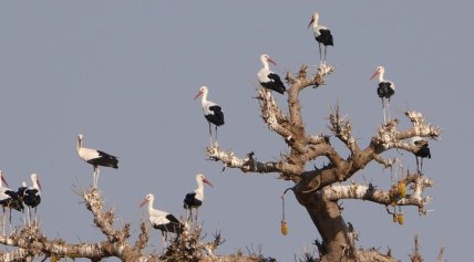 На світлинах ці величні птахи вражають своєю красою: їхнє біле оперення контрастує з чорними маховими перами на крилах, а довгі червоні дзьоби та тонкі лапи додають їм особливої витонченості. Навіть сидячи на гілках африканських дерев, вони тримаються гордо, пильно спостерігаючи за небом та чекаючи на сприятливий вітер для злету.