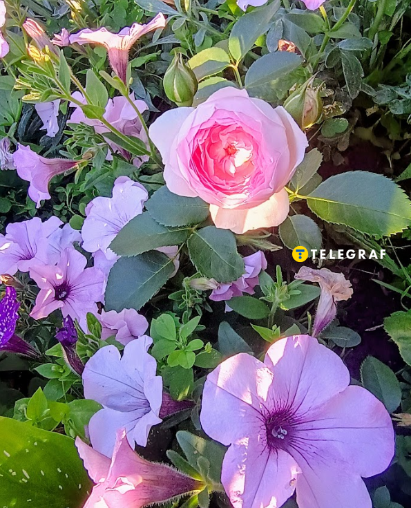 - петунія сорт "Івнінг Сенсейшен" — унікальний сорт синьо-фіолетового відтінку з чудовим ароматом, який особливо виразний у вечірній час. Пагони майже метрової довжини акуратно огортають клумбу, закриваючи порожні місця та створюючи відчуття ароматної подушки. А що ж покладемо на цю "подушку"? Звичайно, царицю квітів)