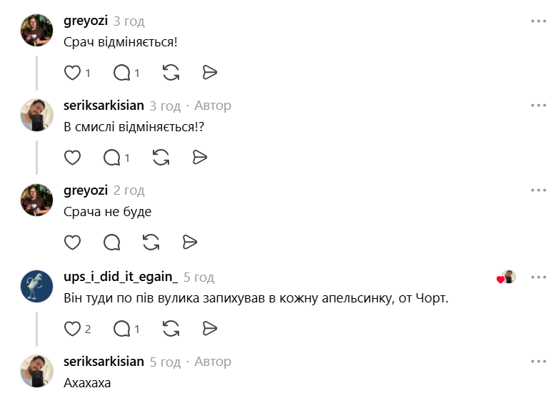 У коментарях відразу почали жартувати на цю тему і тонке відсилання автора посту до мему про Людмилу Янукович та "наколоті апельсини":