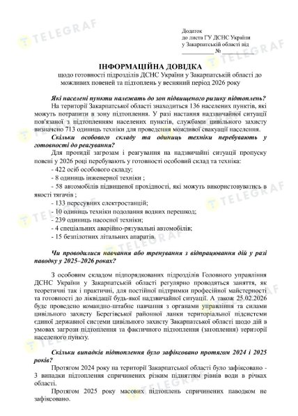 "Телеграф" направив запит до Головного управління ДСНС у Закарпатській області і отримав офіційну відповідь про те, скільки населених пунктів під загрозою і що уже зроблено, щоб велика вода не застала людей зненацька.