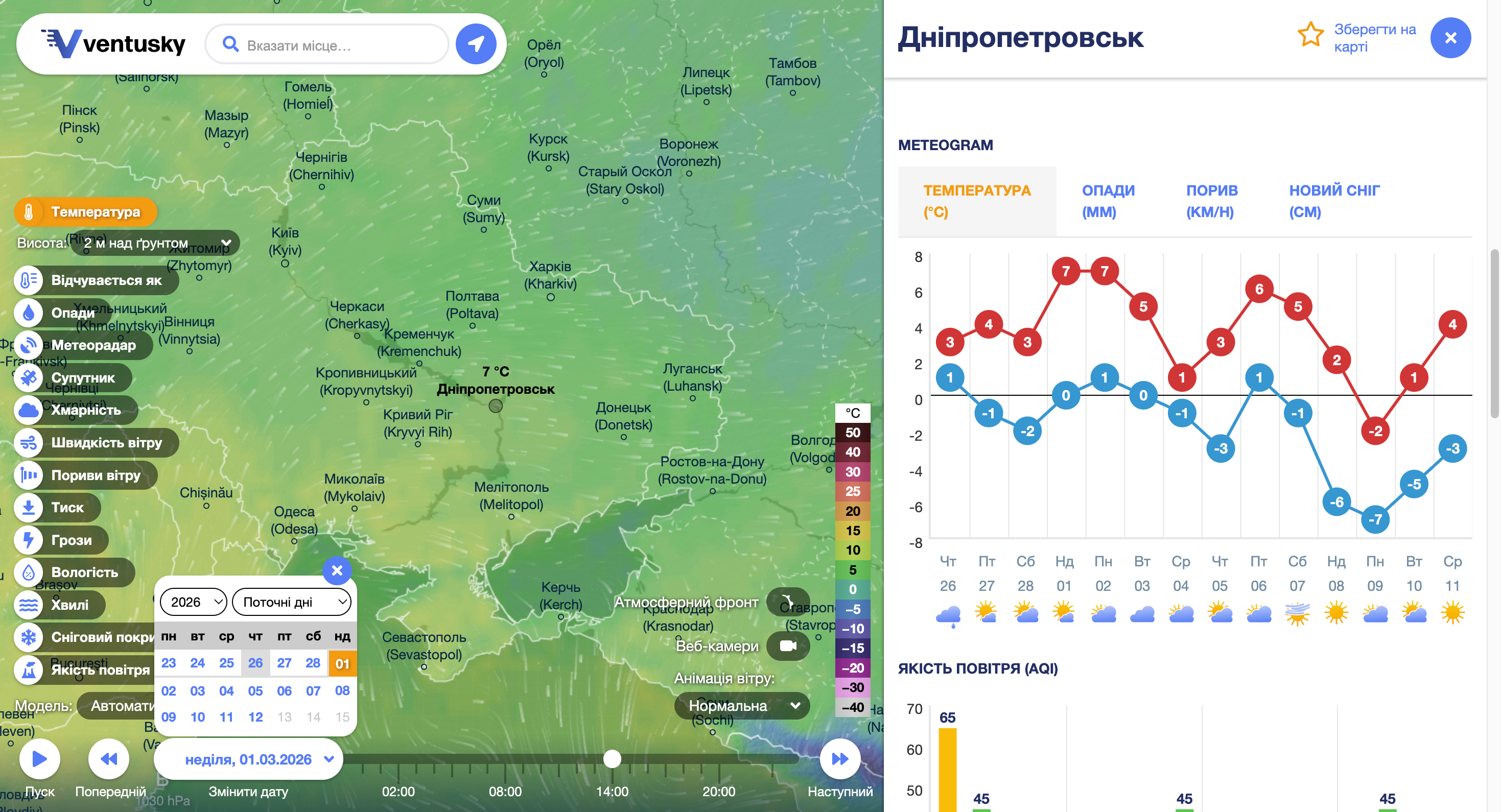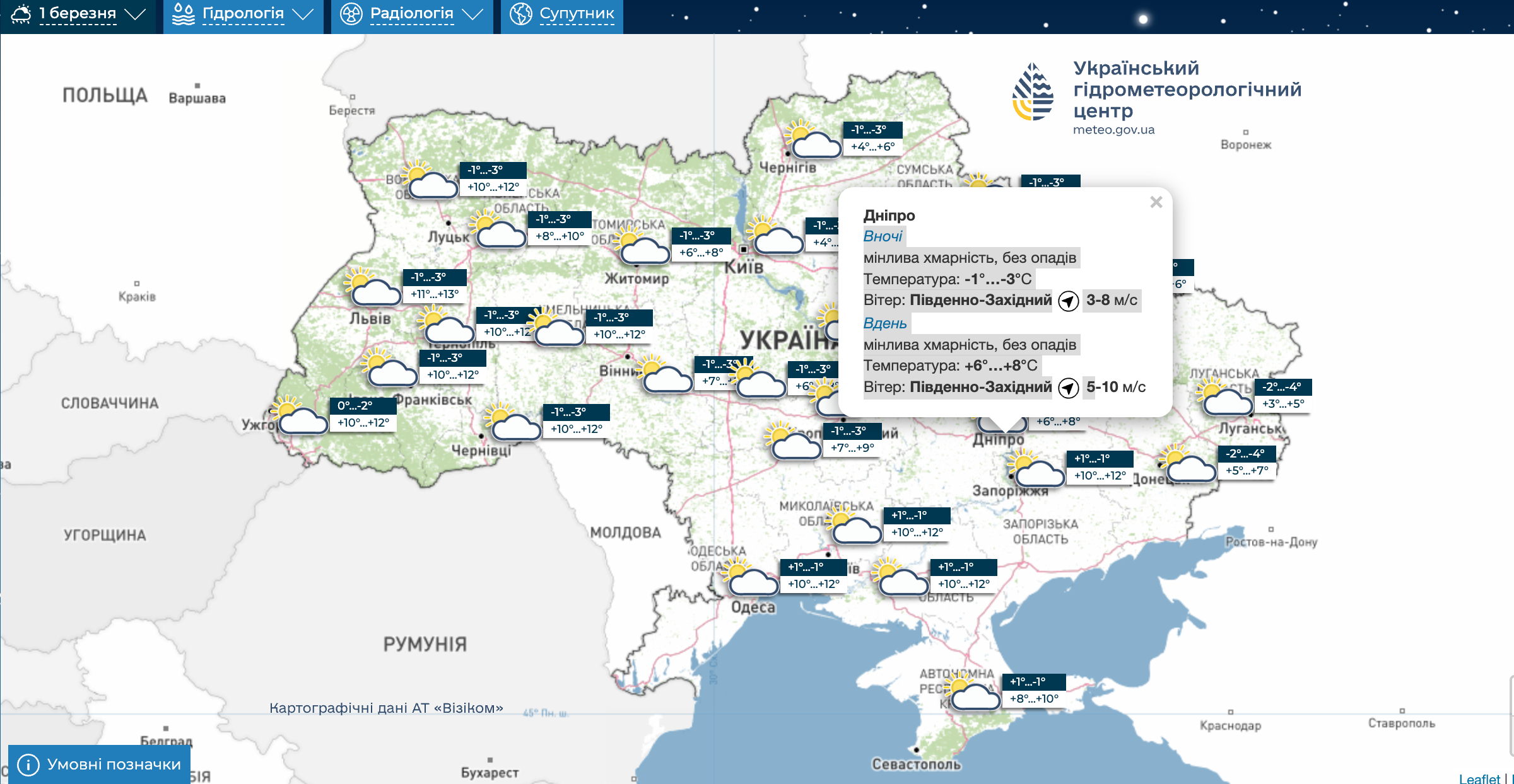 Погода в Дніпрі на 1 березня