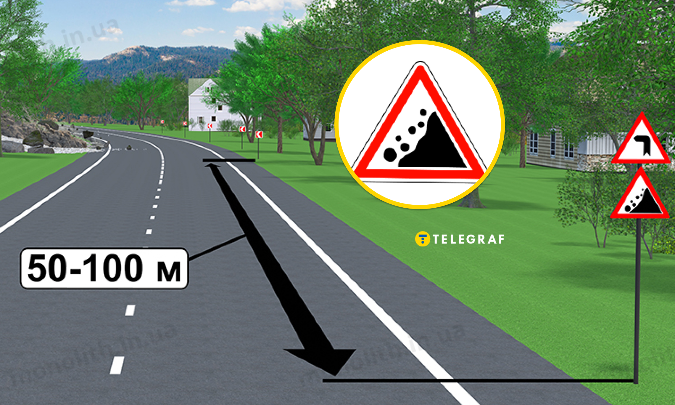 Що означає знак "Падіння каміння", де встановлюється та який вигляд має