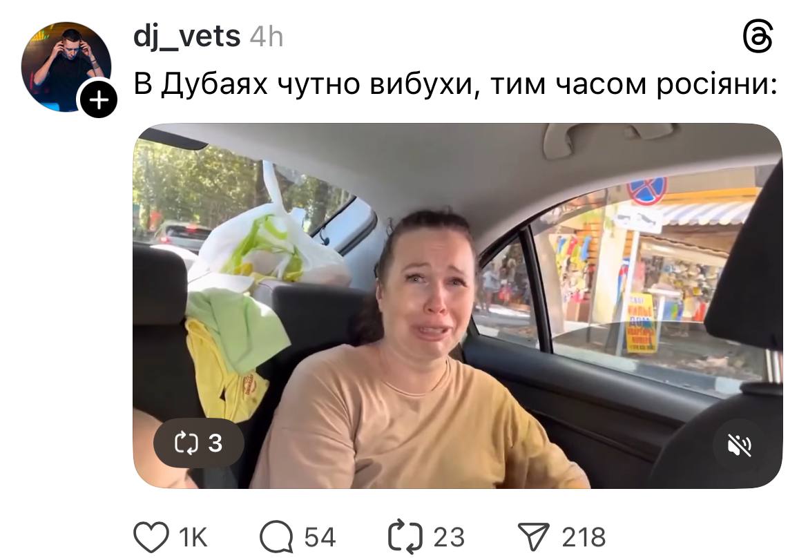 Жартували й про те, що чимало росіян з початку повномасштабного вторгнення переїхали в Дубаї, ОАЕ, але й тут їх застала війна. Адже Іран 28 лютого завдав ударів по військових баз США, які знаходились на сусідніх територіях.