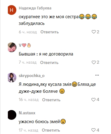 Користувачі зізнаються, що бояться змій. А також жартують, про родинні зв'язки з цим створінням.