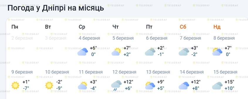 У Дніпрі найближчими днями очікується мінлива погода. Після періоду відносно комфортного тепла місто охопить відчутне похолодання, яке триватиме кілька днів, а згодом можливе квітневе потепління.