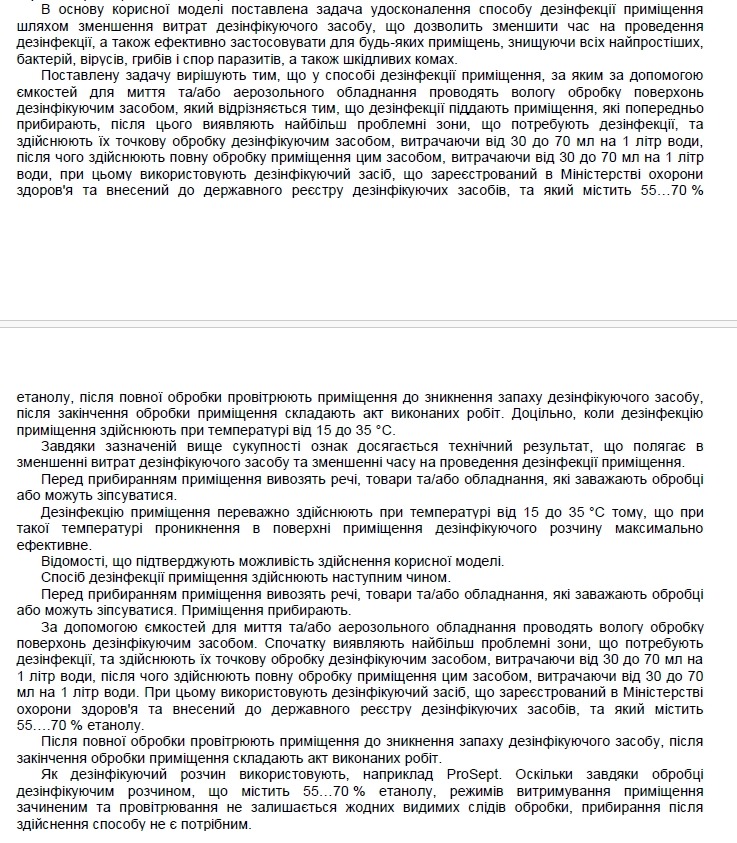 • 149966 ("спосіб дезінфекції приміщення",