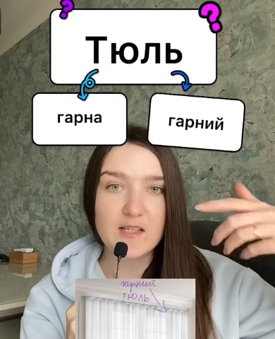 Також вона пояснила як правильно казати: "гарна" чи "гарний" тюль. За її словами в українській мові це слово чоловічого роду. Тож правильно — гарний тюль.