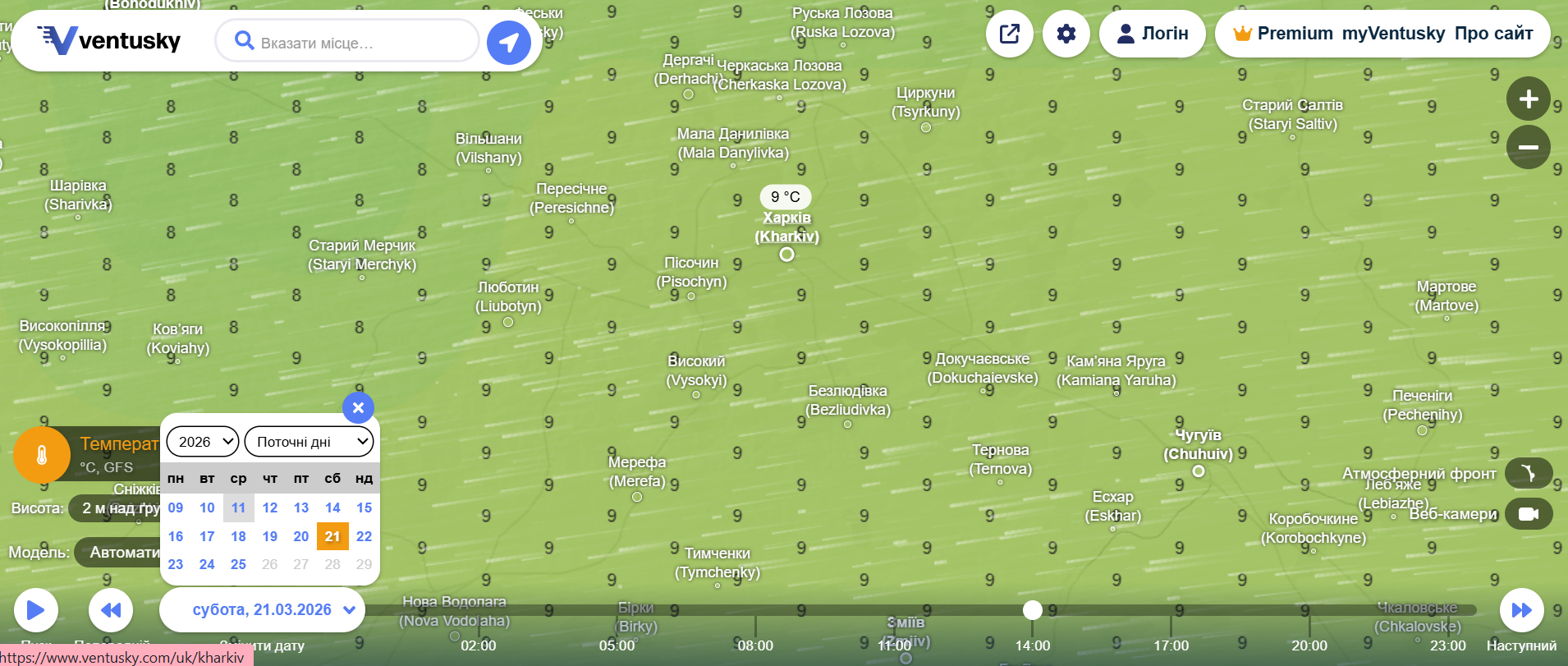 Погода у Харкові на 21 березня. Фото: ventusky