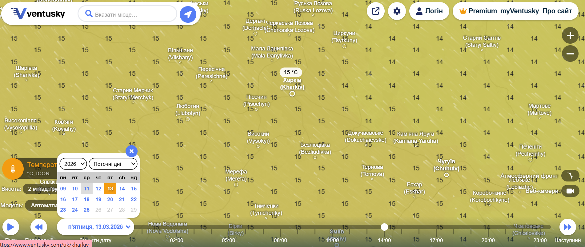 Погода у Харкові на 15 березня. Фото: ventusky