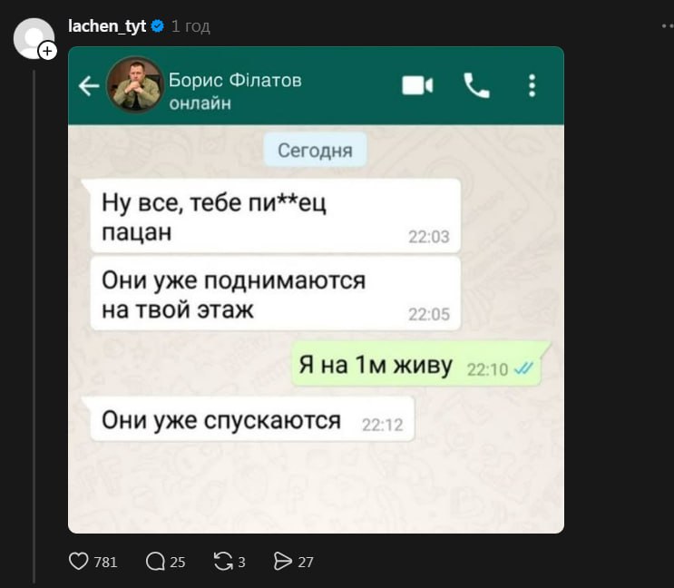 Обидва учасники суперечки не добирають слів і перейшли усі межі. Лаченков та Філатов з Дніпра, тому, можливо, знають один про одного трохи більше.