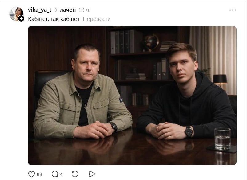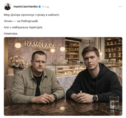 Жартівливу ідею подав у Threads засновник та власник мережі Telegram-каналів "Труха" Максим Лавриненко. Він запропонував Філатову та Лаченкову зустрітися у кафе-кондитерську Namelaka (Намелака).