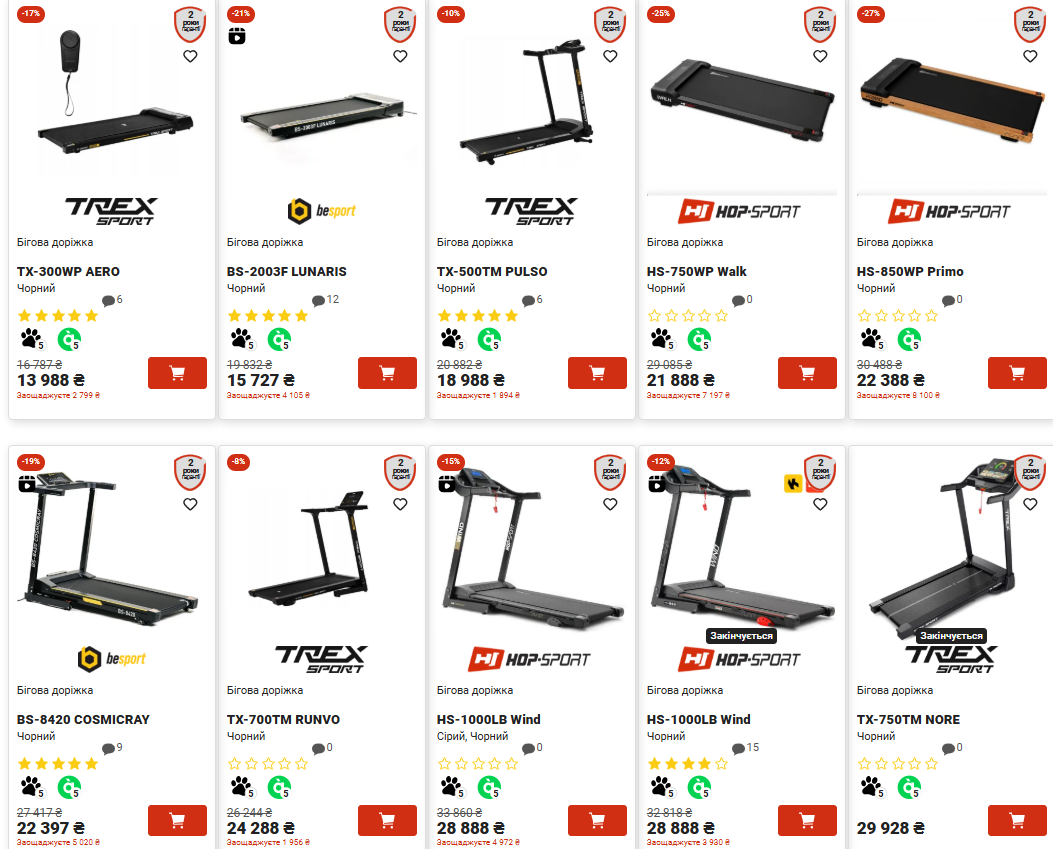 Проте ціни на електричні бігові доріжки "кусаються". Найдешевша коштує близько 14 тисяч гривень, й те зі знижкою. Більш "просунуті" моделі — від 20 тисяч гривень і вище.