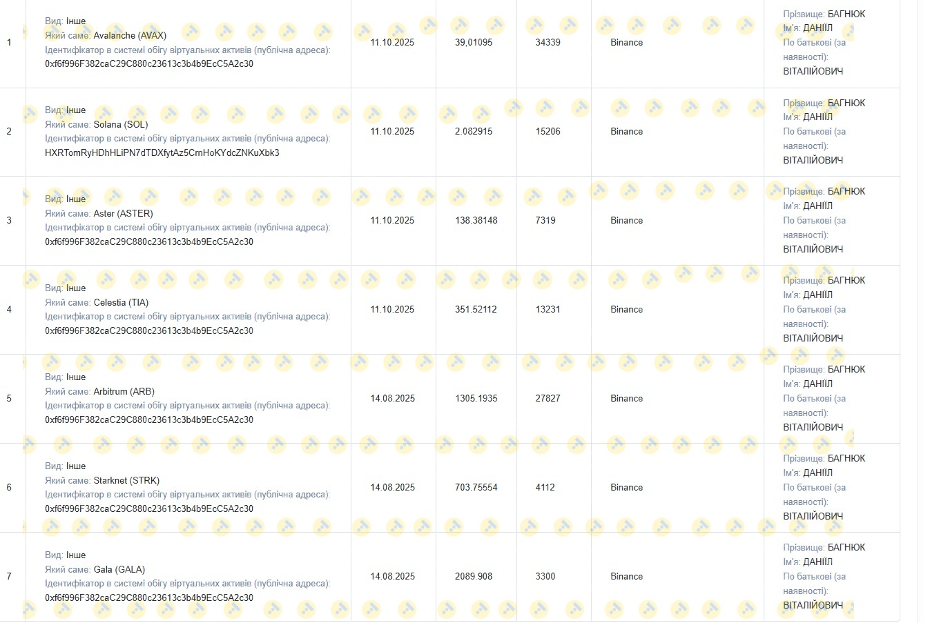 Начальник Нікопольського районного ТЦК та СП Багнюк Даніїл виявився любителем криптовалюти. За 2025 рік він придбав одразу кілька видів монет на тисячі гривень.
