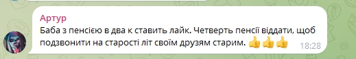 "Баба з пенсією у дві к ставить лайк. Чверть пенсії віддати, щоби подзвонити на старості літ своїм друзям старим";