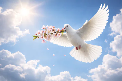 Серед головних традицій Благовіщення — спокій, відмова від сварок, турбота про рідних і добрі справи. У народній культурі цей день пов’язували з початком справжньої весни, оновленням і надією на краще. Саме тому в листівках часто з’являються білі лілії, голуби, сонячне небо, храми і ніжні весняні кольори.