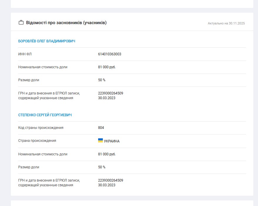 Так, Степенко співвласник компанії "Старт плюс". Ця фірма знаходиться в окупованому українському Донецьку, але зареєстрована у РФ, отримала в Росії у 2024-му ліцензію на продаж алкоголю.