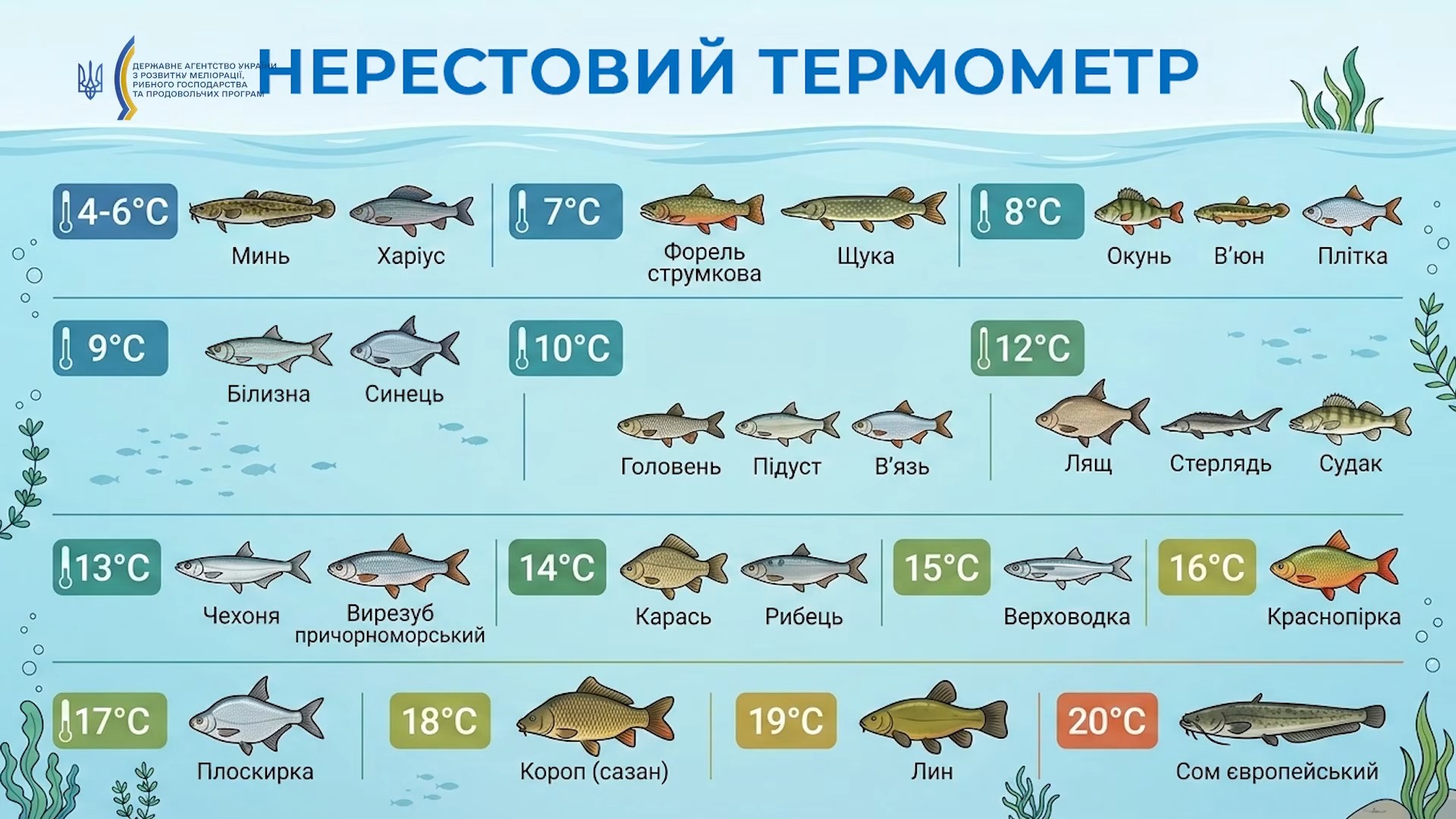 У частині регіонів, зокрема на заході, заборона розпочалася раніше — вже наприкінці березня. Причина в температурі води: різні види риби нерестяться при різних умовах — від +4 до +20°C. Саме тому строки щороку коригуються по областях і публікуються окремо.