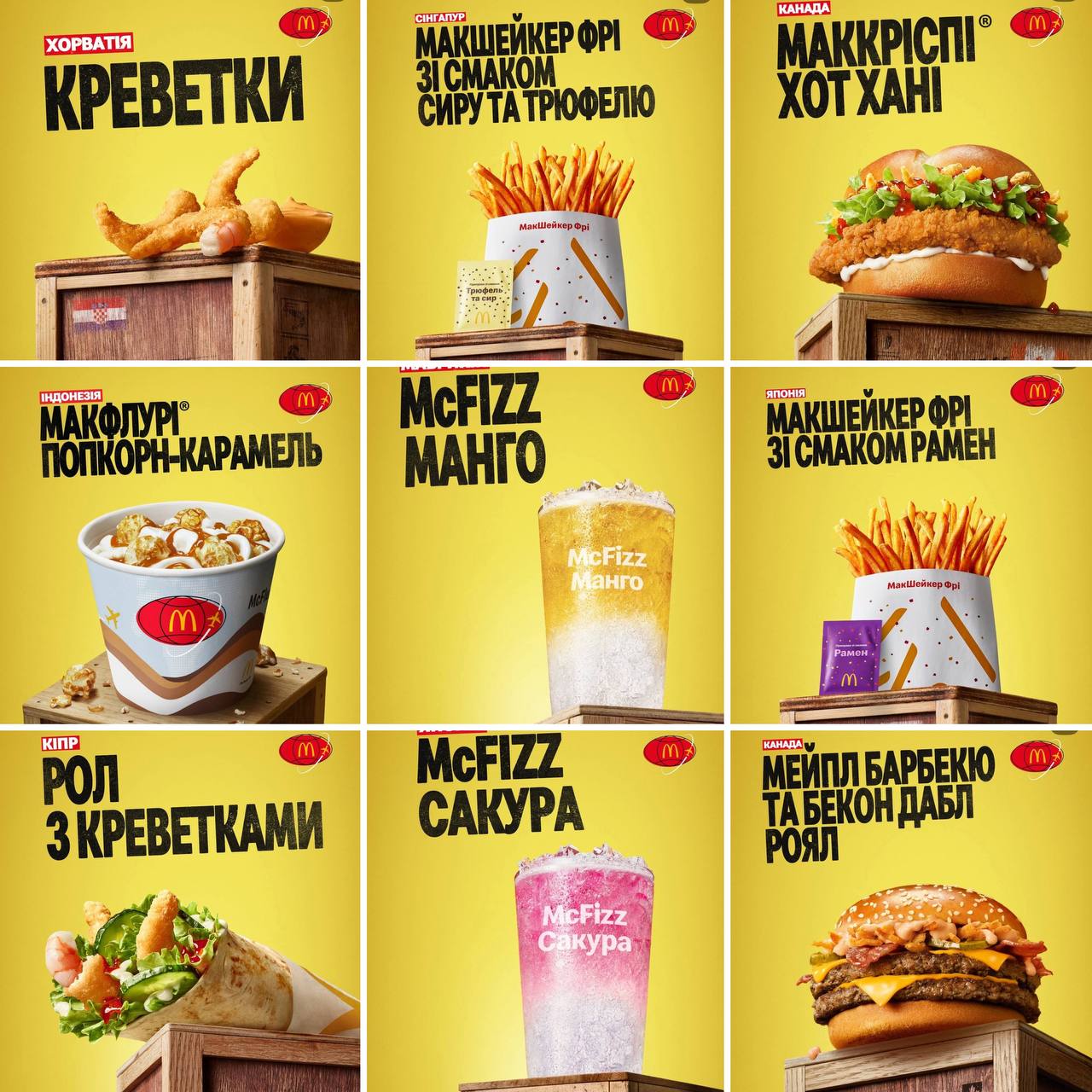 У межах "Світового меню" відвідувачам пропонують страви та напої з яскравими локальними смаками. Зокрема, серед новинок — канадські бургери, фрі зі смаком рамен, освіжаючий газований напій тощо. Запуск в Україні очікується 15 квітня.
