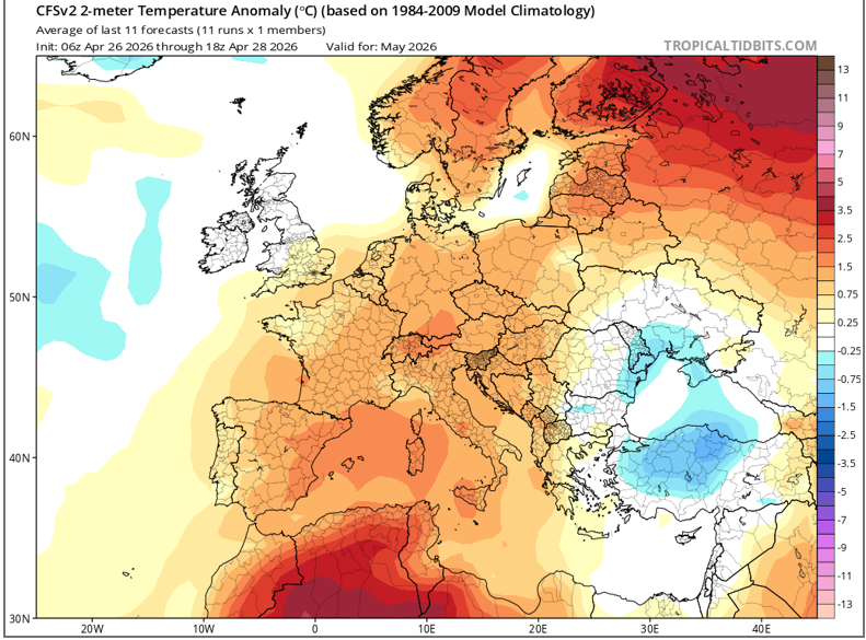Якщо 1–2 травня вночі ще можливі місцями заморозки до 0…-3 °С, то вже під кінець першої декади вночі потеплішає до +7…+13 °С, а денна температура в середньому виросте від +11…+17 на початку місяця до +22…+27 ближче до 8 – 10 травня, — прогнозує Кібальчич