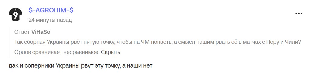 Відповідний коментар Орлова наводить sport24.ru. За його словами, українці на даний момент сильніші за росіян, адже пробилися до стикового раунду відбору на чемпіонат світу-2026.