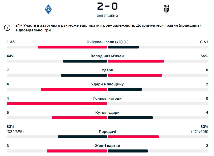 У четвер, 18 грудня, "Динамо" зіграло проти вірменського "Ноа" у рамках 6-го туру Ліги конференцій УЄФА сезону 2025/26. Для Біло-Синіх це був останній поєдинок у єврокубковій кампанії.