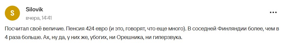 У мережі лише посміялися зі слів Пономарьова. Користувачі зазначили, що "велич РФ" у злиднях, маленьких пенсіях, а головною суперзброєю росіян є не "Орєшнік", а "бояришнік".