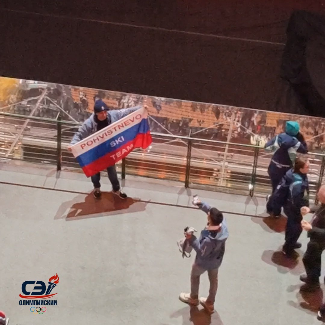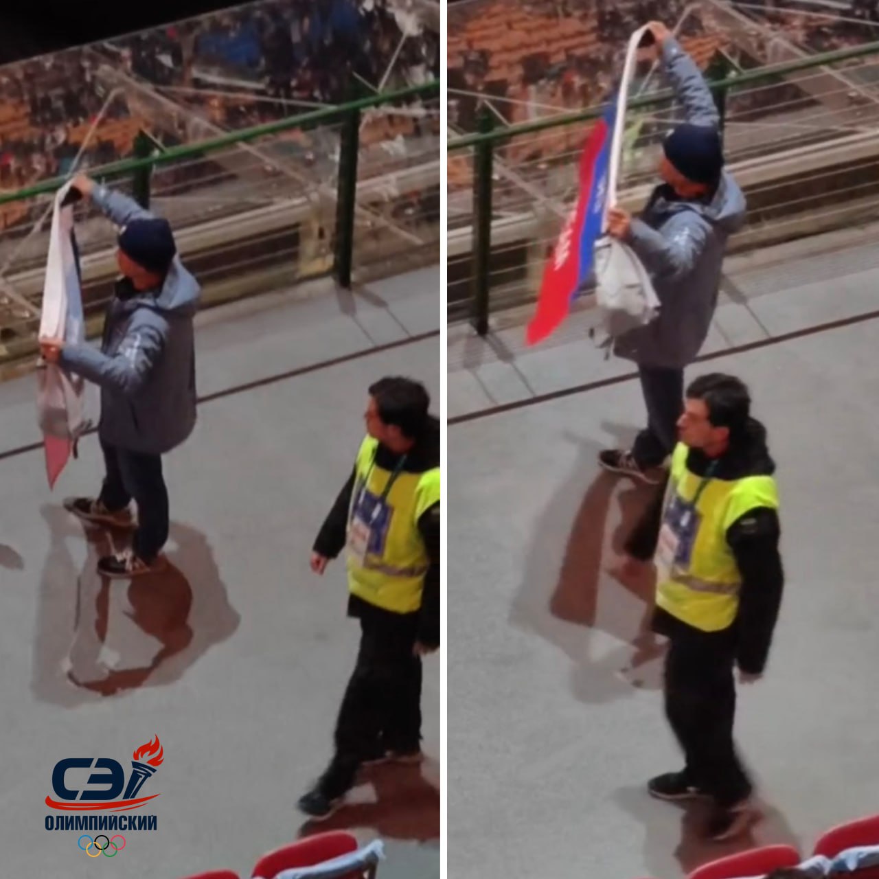 Стюарди на ОІ не відреагували на появу російського прапора на трибунах. Про це повідомляє "Спорт-Експрес".