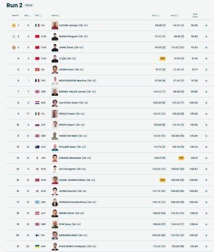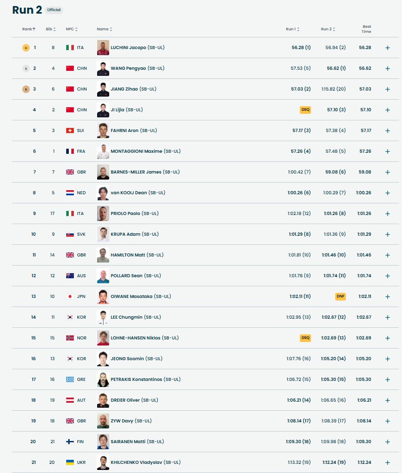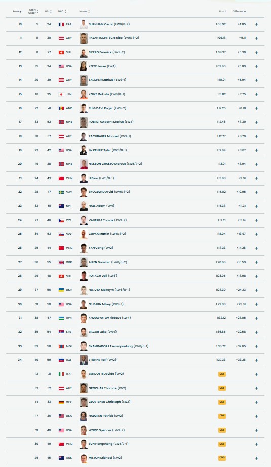 10:00 — 🥇Парагірськолижний спорт. Гігантський слалом, чоловіки (спортсмени з порушеннями ОРА, клас стоячи) (заїзд 1) – Максим Гелюта показав 29 результат після 1-го заїзду. Після 2-го заїзду українець посів підсумкове 27 місце.
