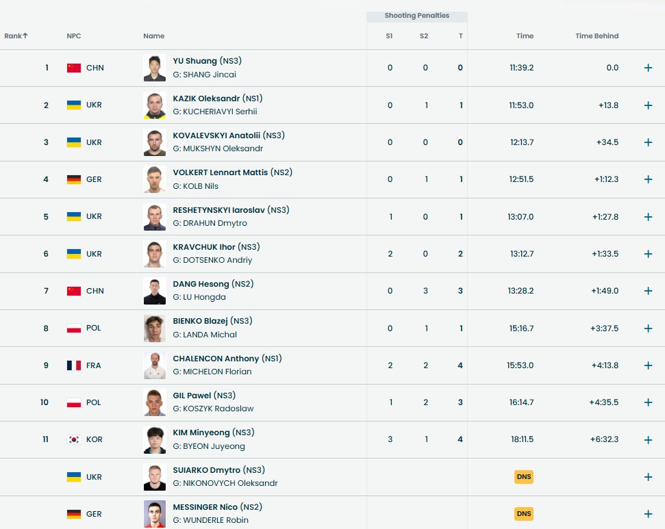 Річ у тім, що китайському парабіатлоністу вдалося відіграти понад хвилину у Казіка. Додамо, що Ярослав Решетинський посів 5-те місце, а Ігор Кравчук – 6-те. Дмитро Суярко не стартував.