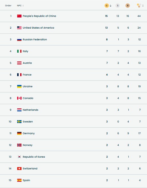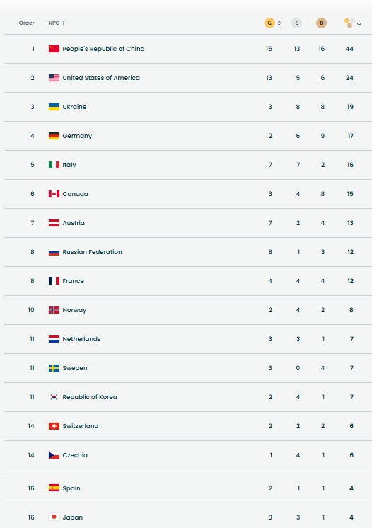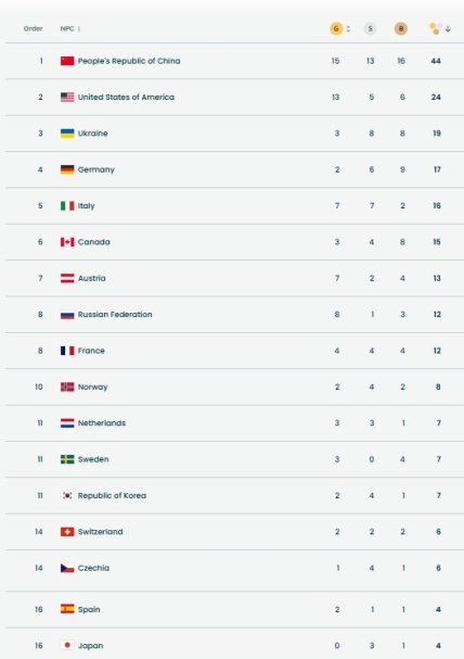 Медальний залік Паралімпіади-2026