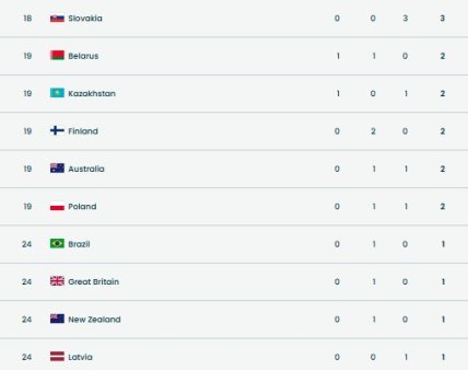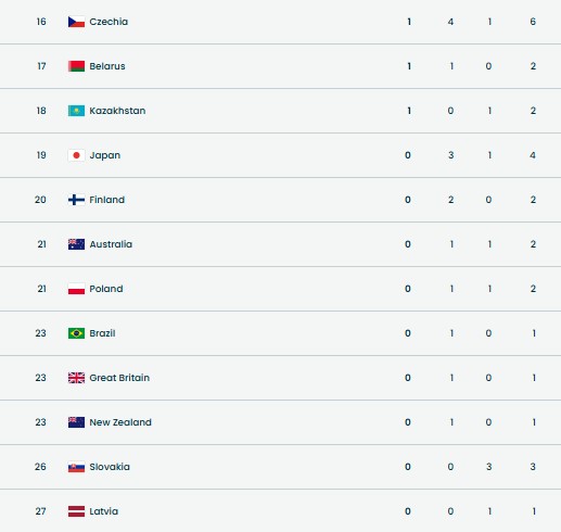 За загальною кількістю медалей збірна України посіла третє місце.